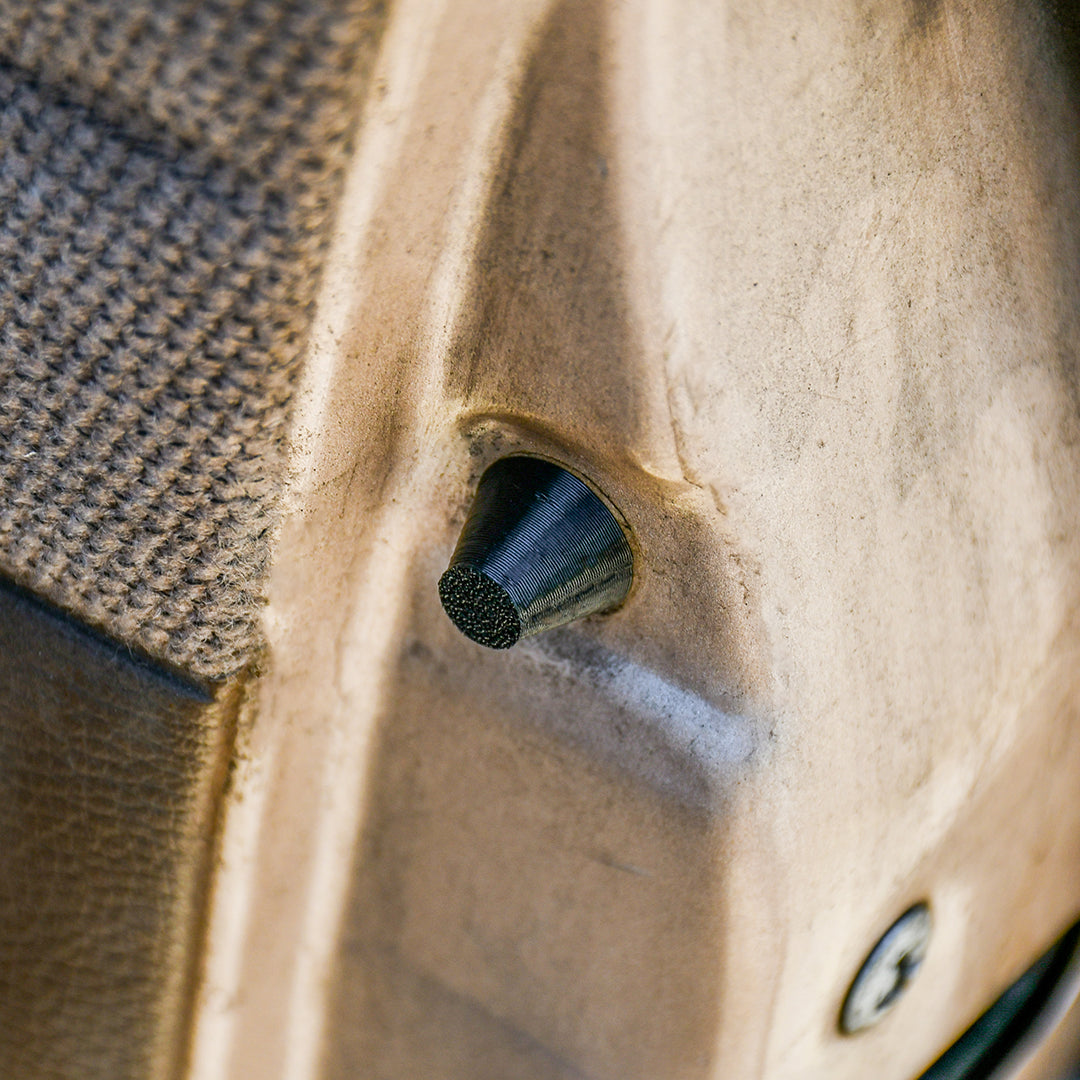 Mounted on the door and facing inward toward the vehicle, these rubbers compress against the body’s door sill to maintain consistent pressure when closed. The result is a more solid door shut feel and improved sealing to the cabin.