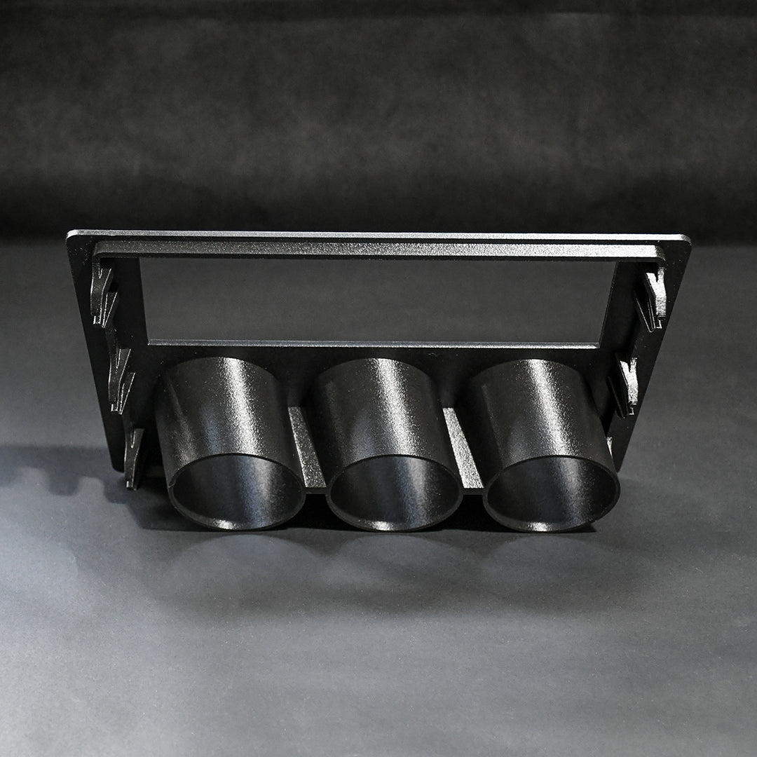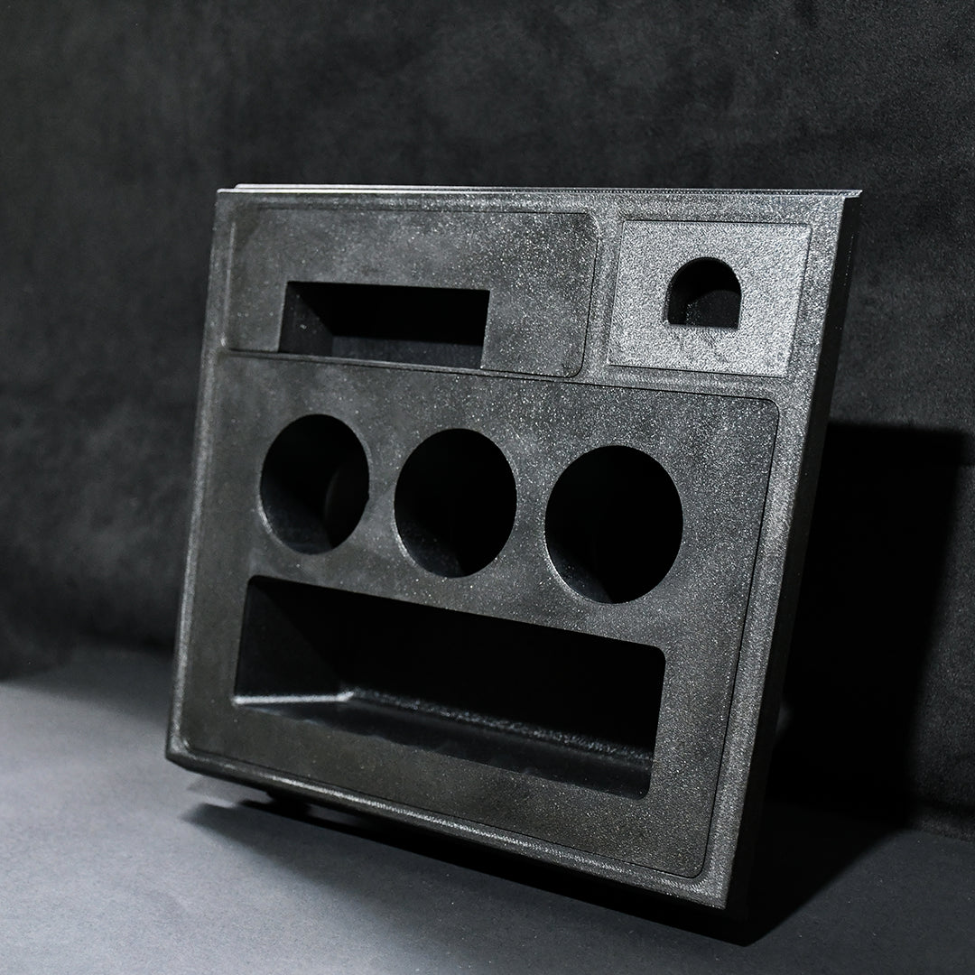 The backplate locks into factory mounting points, it's also compatible with the OEM cigarette lighter and slide-out ashtray. The fascia takes up the lower two-thirds of the surround and can be tailored to your setup, single or double DIN, discreet storage solutions or multi-gauge configurations.