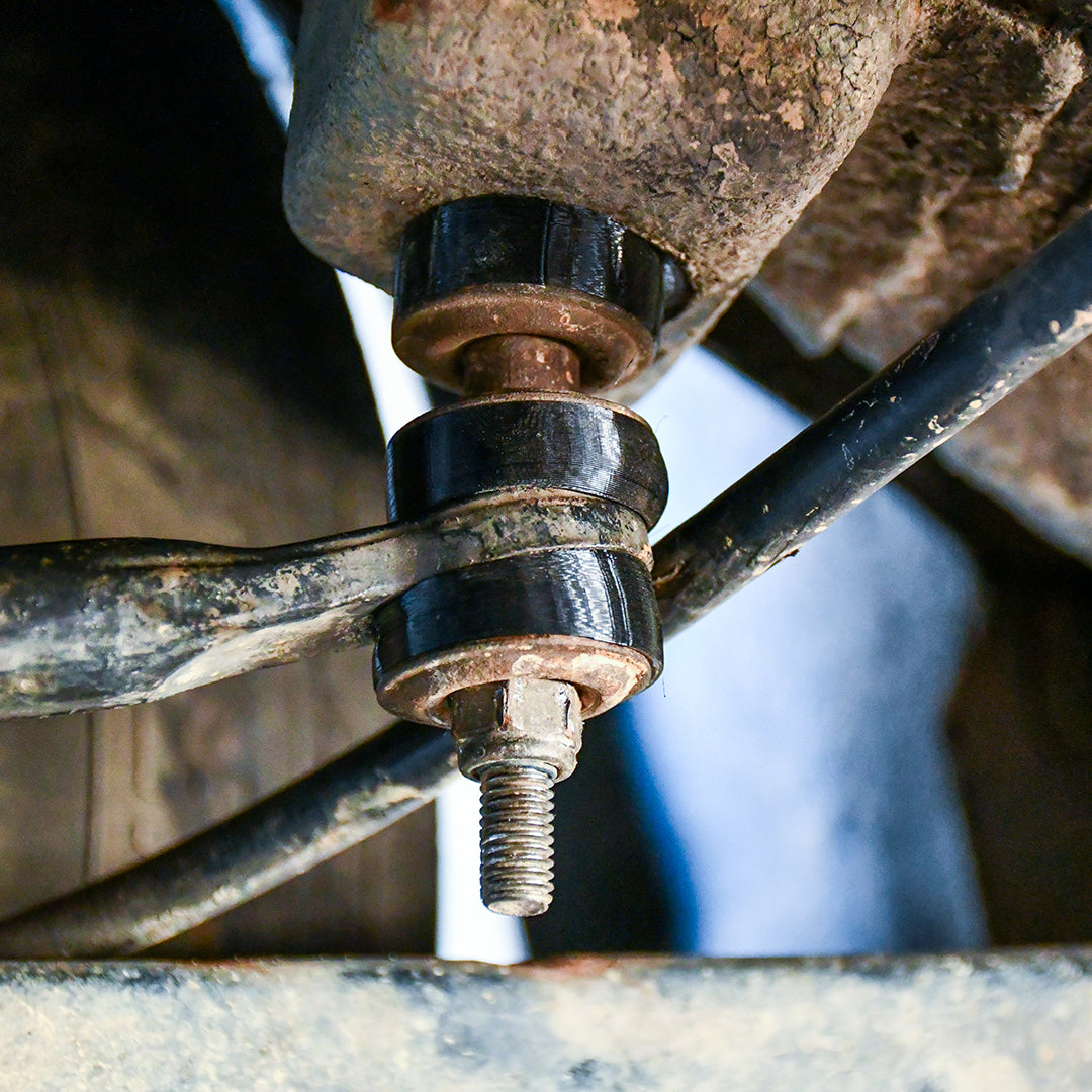 8. Remount with new bushes and tension the sway bar link bolt until all link bushes have your desirable tension loaded (bushes should be compressed and squished, ensure factory nyloc nut is still intact on the underside of the LCA connecting to the sway bar link bolt, this will prevent backing out).