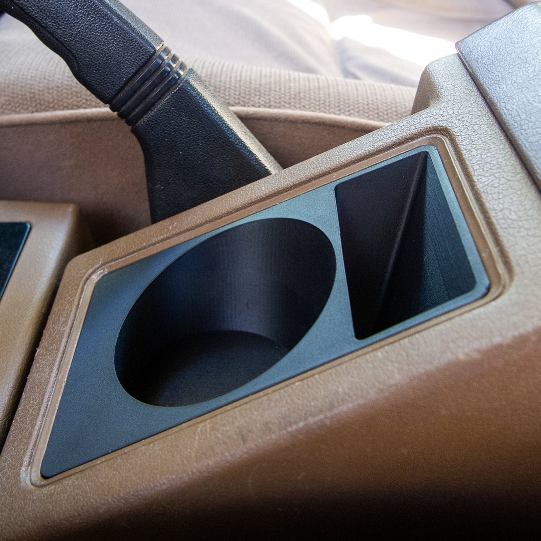 Upgrade your Nissan R31 Skyline with our custom-designed cupholder, specifically tailored to fit seamlessly into the space directly in front of your centre console. This cupholder provides both functionality and style, ensuring you can enjoy your favorite beverages on the go without compromising the aesthetic of your vehicle.